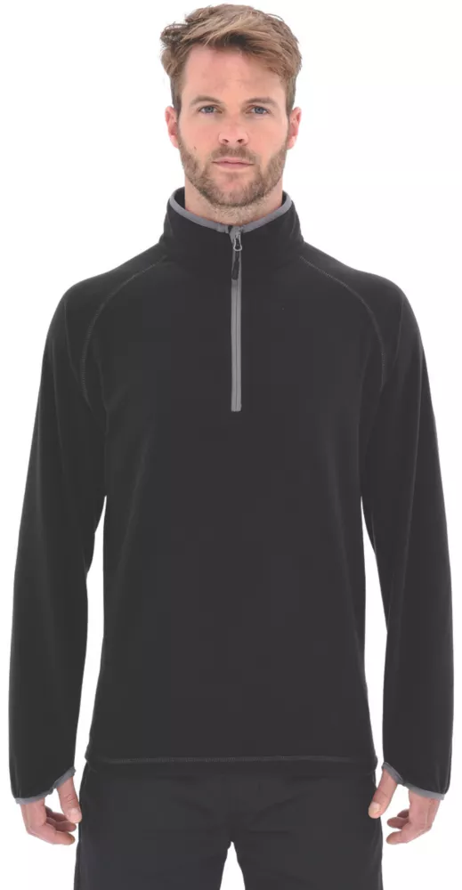 Lightweight microfleece pullover with elasticated thumb hole cuffs and half-front zip. 200g/m²