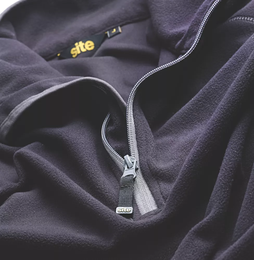 Lightweight microfleece pullover with elasticated thumb hole cuffs and half-front zip. 200g/m².
