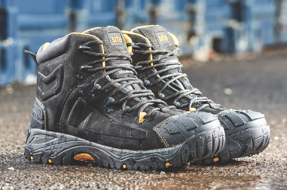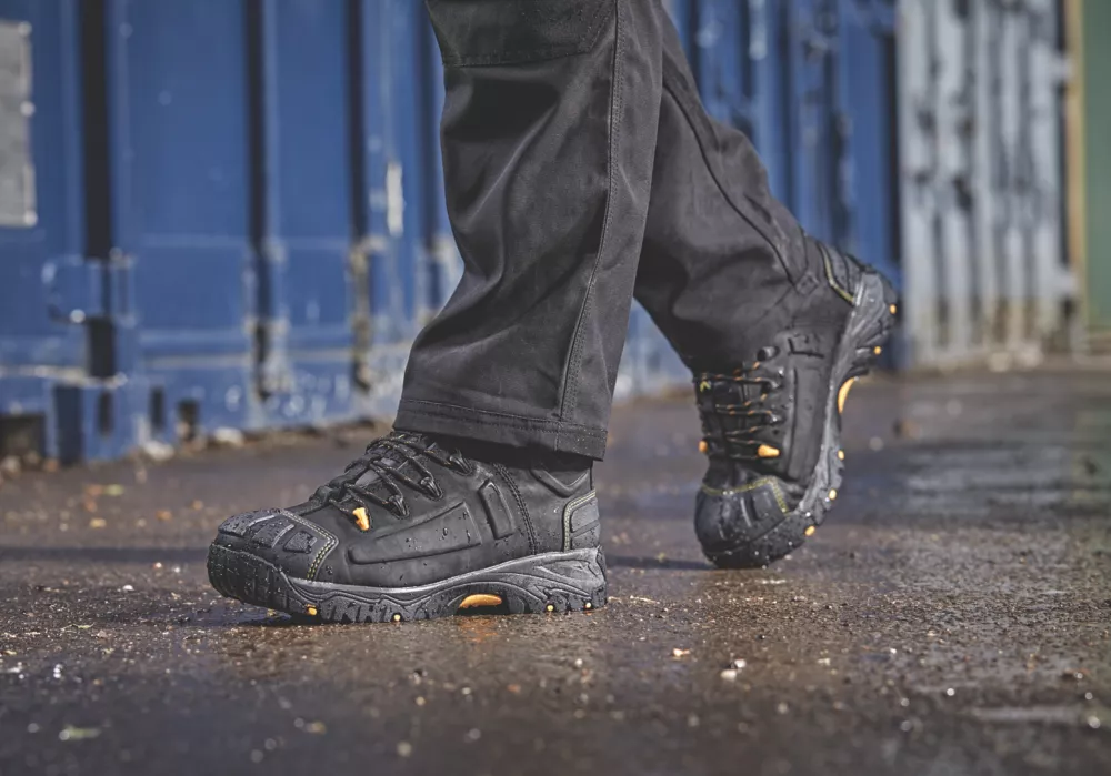 Tough and hardwearing safety boots with moulded rubber scuff cap and PU footbed. Water-resistant Nubuck leather upper. Padded tongue and collar.