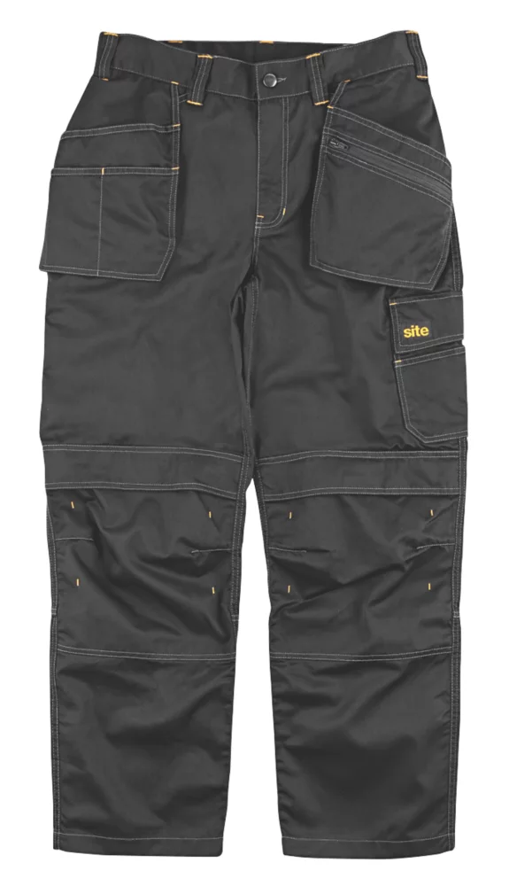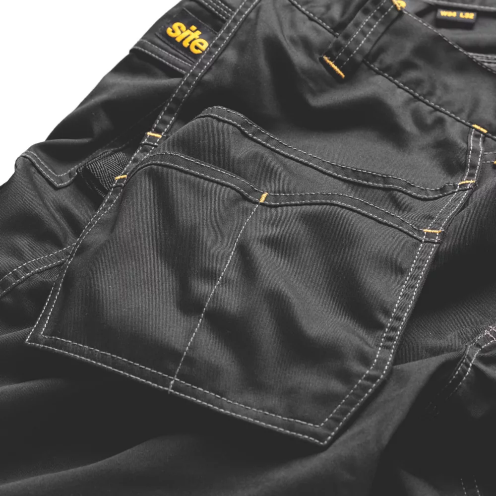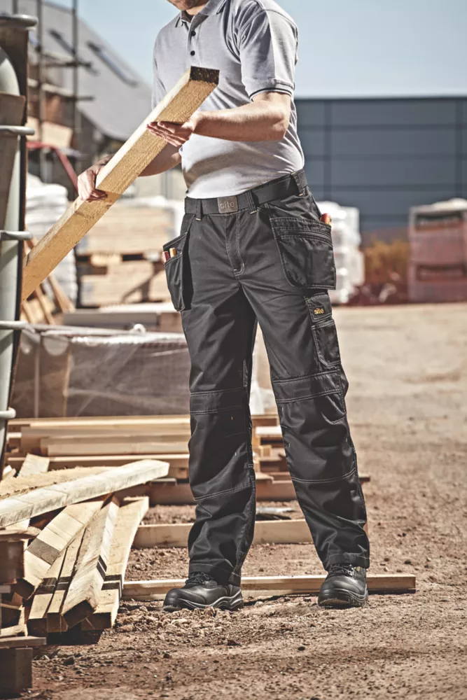 Polycotton trousers with top-loading knee pad pockets, tool holsters and belt loops. Double-stitched for extra durability. 235g/m².