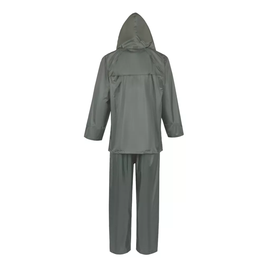 Water-repellent jacket and trousers, ideal to wear over clothing to help stay dry and clean. Trouser features an elasticated waistband and easy-access pockets. Jacket features packaway hood and 2 lower pockets.