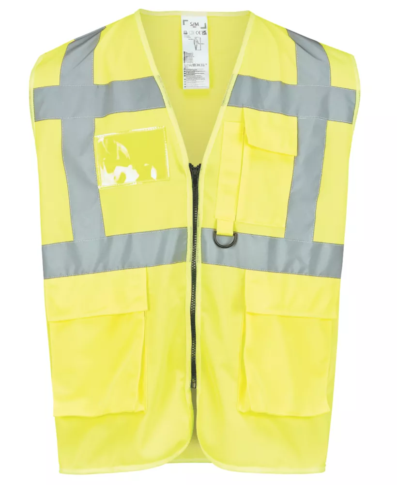 Multi-pocket, hi-vis waistcoat in lightweight fabric. Reflective tape.