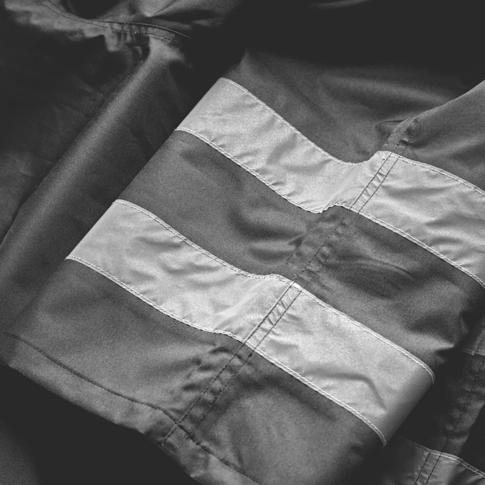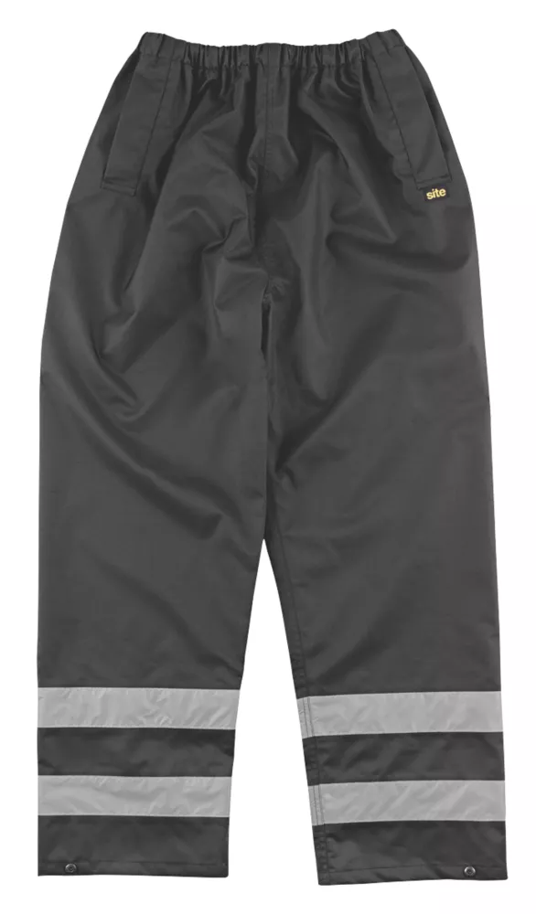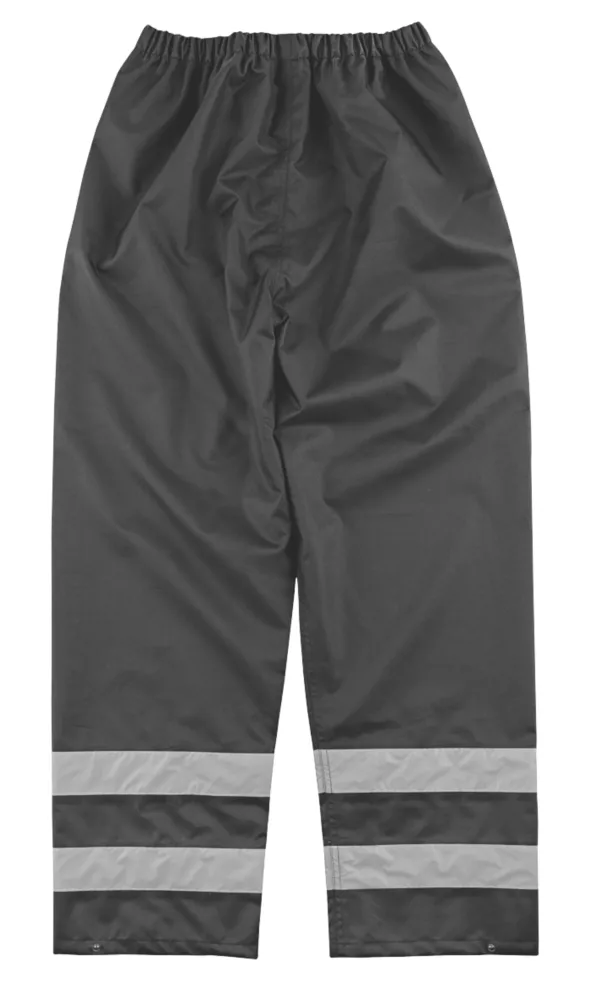 Waterproof trousers with heat-seal taped seams and reflective tape. Features an easy pull-on style with pockets to allow access to garments worn underneath.