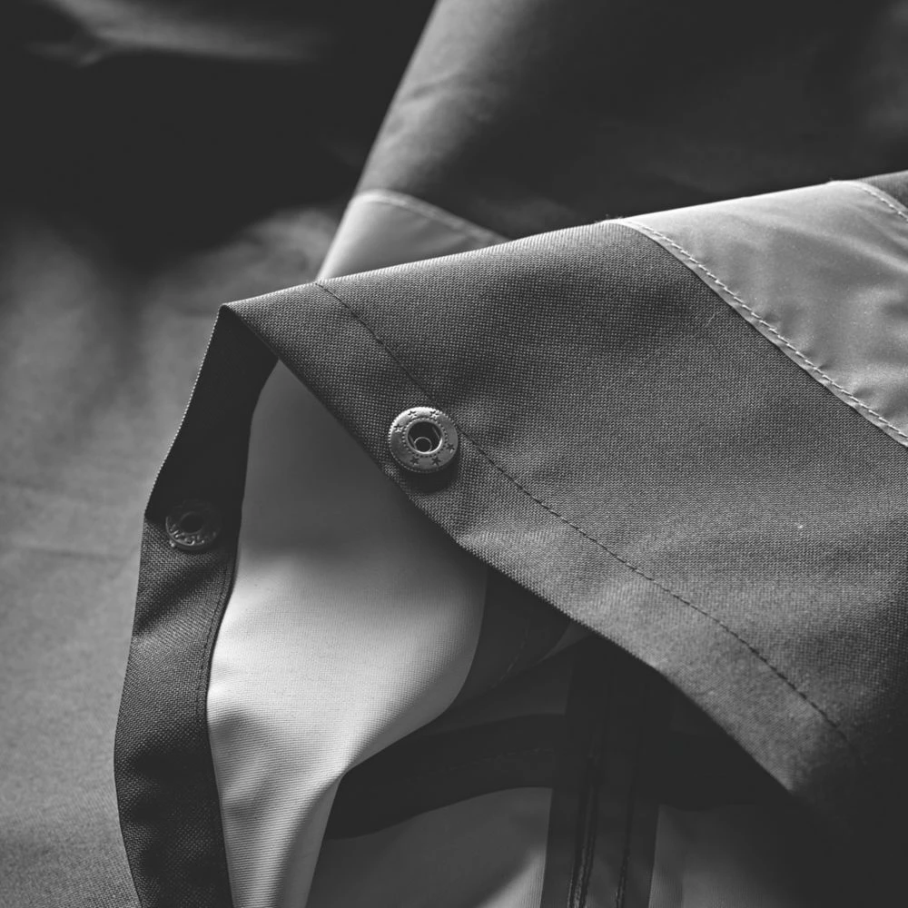 Waterproof trousers with heat-seal taped seams and reflective tape. Features an easy pull-on style with pockets to allow access to garments worn underneath.